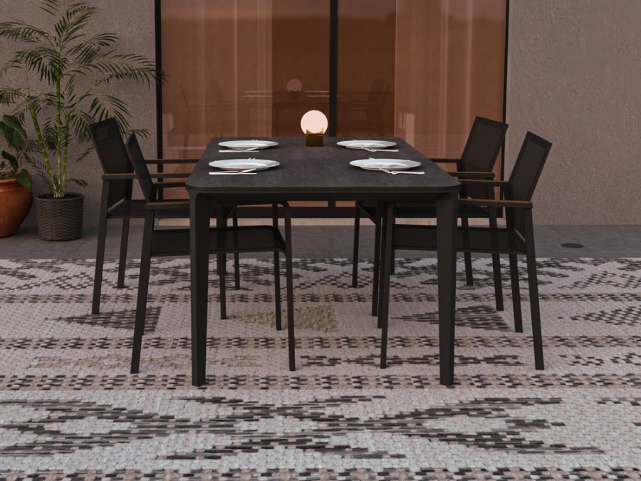 Dank seines zeitlosen Designs in Graphit und Carbon-grey eignet sich der Zebra Bee Sessel graphite Armlehnen Teak hervorragend zur Kombination mit weiteren Outdoor-Möbeln. Besonders harmonisch wirkt eine Zusammenstellung mit einem passenden Tischgestell wie Zebra Mikado Tischgestell Graphite. Für individuelle Tischlösungen können verschiedene Tischplatten wie Zebra Sela Kunstharzplatte Dark Marble 110cm rund, Zebra Sela Kunstharzplatte Beton 110cm rund oder Zebra Sela Kunstharzplatte Volcanic Stone 110cm rund eingesetzt werden. So entsteht eine optisch stimmige Sitzgruppe, in der der Zebra Bee Sessel graphite Armlehnen Teak den modernen, komfortablen Sitzplatz bildet.