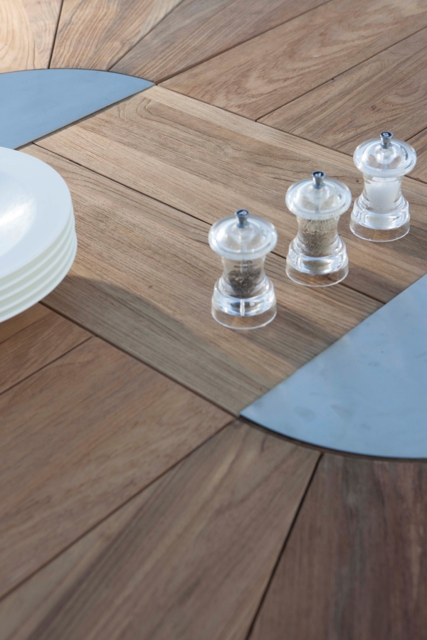 Zebra Catax Ausziehtisch Edelstahl aus recyceltem Teak 135x135-185cm – nachhaltiger Gartentisch mit modernem Design und flexiblem Synchronauszug