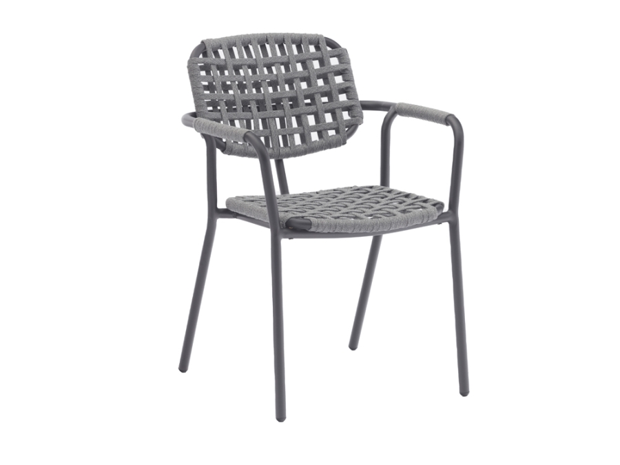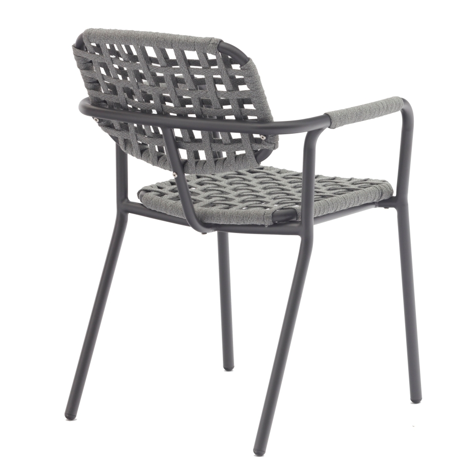 Bei der Herstellung des Costa Sessels liegt der Fokus auf Qualität und Langlebigkeit. Der Rahmen besteht aus pulverbeschichtetem Aluminium in der Farbe Graphit. Die Bespannung des Sessels ist aus einem grauen Kordelgeflecht gefertigt, was ihm nicht nur ein interessantes Design, sondern auch einen hohen Sitzkomfort verleiht. Die verwendeten Materialien sind zu 100% Polyester, was den Sessel besonders strapazierfähig und witterungsbeständig macht.