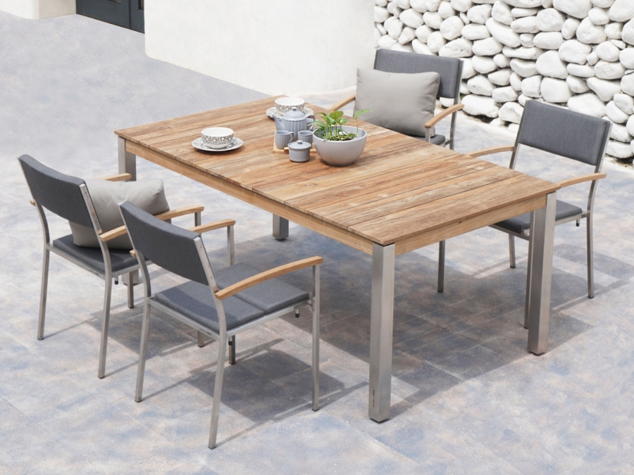 Eleganter und moderner Zebra Derex Tisch 180x100cm, Teak-Edelstahl: Perfekt für Ihre Terrasse
