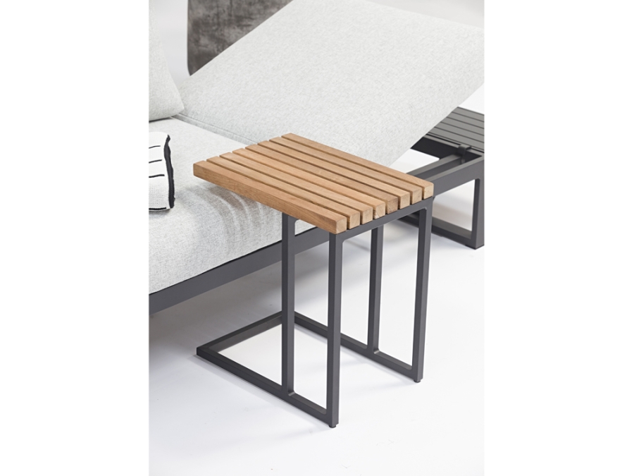 Zebra Fly Beistelltisch – stilvoller Gartentisch aus Aluminium und Teakholz für moderne Balkone und Lounges