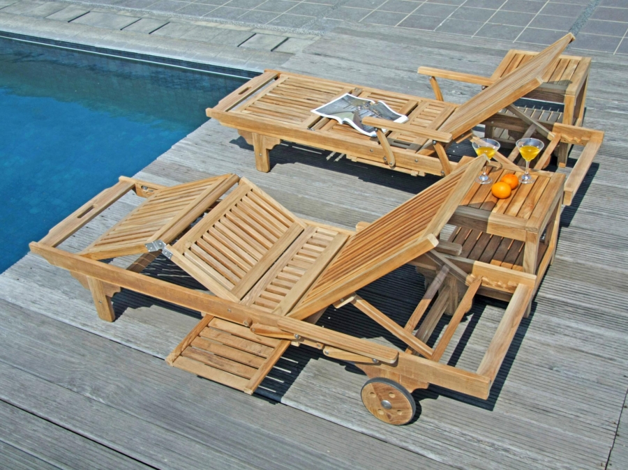 Die Rollliege von Zebra bietet auch eine herausziehbare Ablagefläche unter der Sitzfläche- ideal zum Ablegen von Zeitschriften oder Getränken. Kleine Details wie die schmale Holzleisten aus Teak, die die Tischplatte des Beistelltischs Lobby bilden, runden das Bild ab und verleihen ihm eine elegante Note.