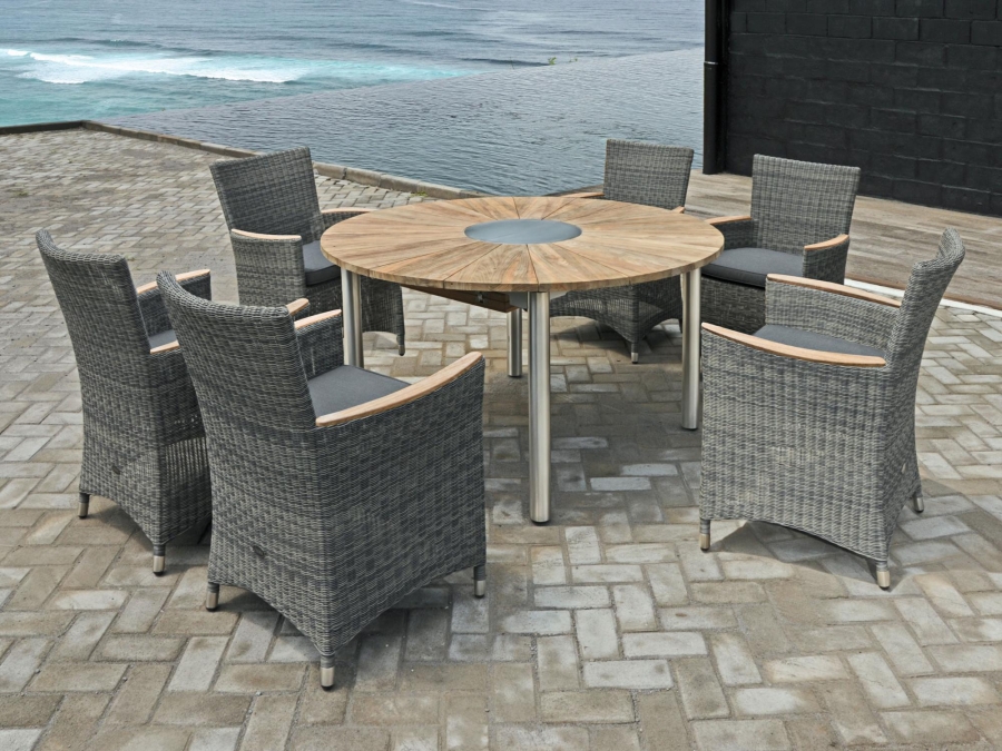 Das Gartenmöbel-Set Status-Catax ist durch das verwendete Kunststoffgeflecht, Edelstahl und recyceltes Teakholz grundsätzlich gut für den dauerhaften Außeneinsatz geeignet. Regelmäßige Reinigung mit mildem Reinigungsmittel und Wasser genügt in der Regel, um die Oberflächen von Staub und Schmutz zu befreien. Das Teakholz kann je nach Wunsch geölt oder unbehandelt belassen werden, um eine natürliche Patina entstehen zu lassen. Für zusätzlichen Schutz vor Witterungseinflüssen empfiehlt sich die Nutzung einer passenden Abdeckung, wie sie im Sortiment von Zebra erhältlich ist, beispielsweise über hier. So bleibt die Gartenmöbel-Garnitur Status-Catax länger ansprechend und funktional.