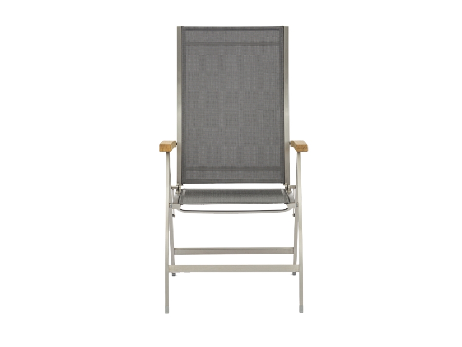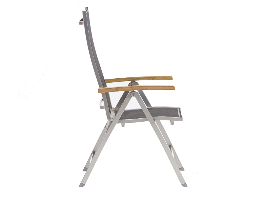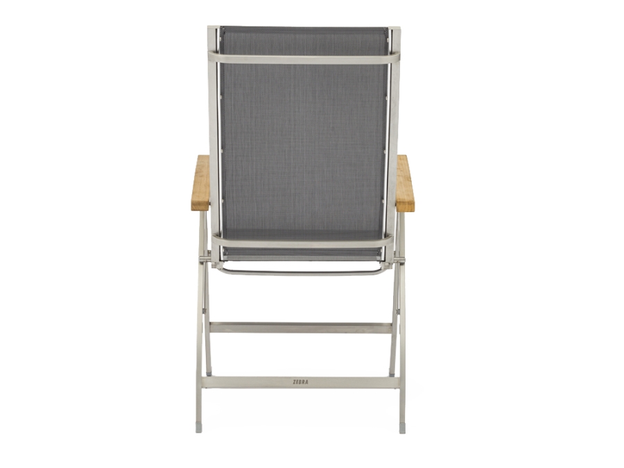 Zebra One Klappsessel Dark Platinum Edelstahl mit Teakarmlehnen – komfortabler Gartenstuhl für stilvolle Balkone und Terrassen