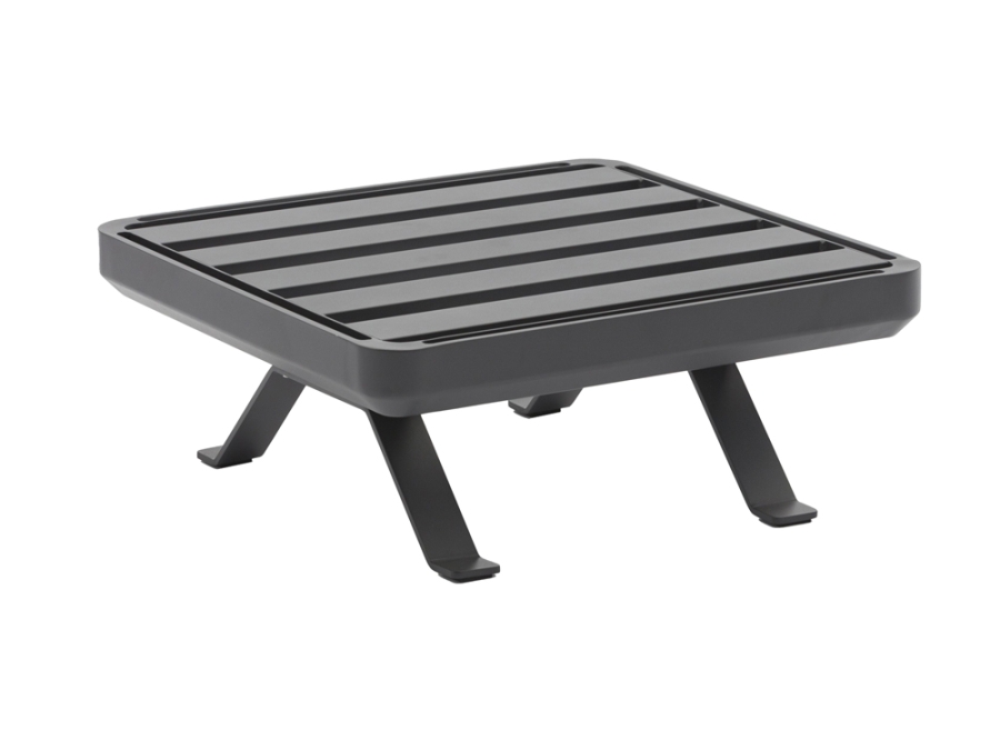Die robuste Struktur dieses Hockers verdankt sich dem Aluminiumgestell, versehen mit einer ansprechenden graphitfarbenen Pulverbeschichtung. Die Beine aus pulverbeschichtetem Edelstahl verleihen dem Hocker zusätzliche Stärke und Haltbarkeit, die ihn über Jahre hinweg begleiten wird.