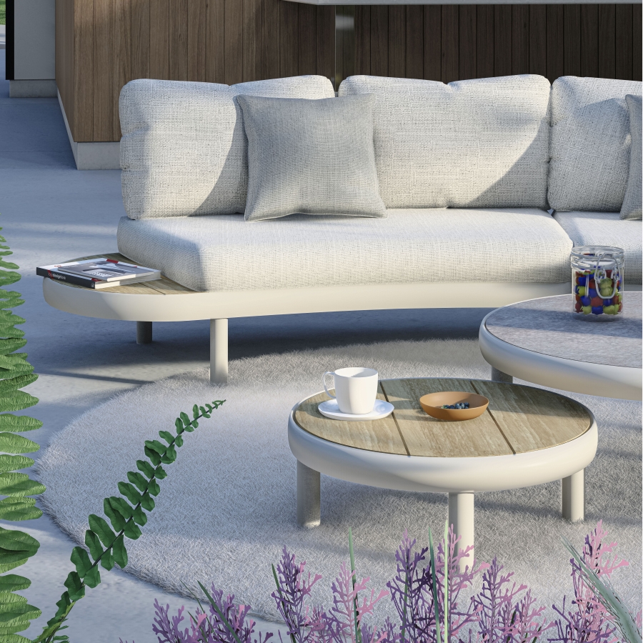 Das Zebra Wave 2-Sitzer light taupe 174,5x116cm ist für den dauerhaften Einsatz im Outdoor-Bereich bestens geeignet. Durch die pulverbeschichtete Aluminiumkonstruktion und das Sunproof Gewebe verfügt das Sofa über eine ausgeprägte Witterungsbeständigkeit und UV-Beständigkeit. Gleichzeitig ist die Oberflächenstruktur pflegeleicht, sodass Verschmutzungen in der Regel mit wenig Aufwand entfernt werden können. Ein besonderes Detail ist der integrierte Teak Seitentisch, der als praktische Ablagefläche für Getränke, Bücher oder Accessoires dient und das Zebra Wave 2-Sitzer light taupe 174,5x116cm funktional erweitert. Optional kann das Sofa mit der passenden Zebra Schutzhülle für Wave 2-Sitzer ergänzt werden, um die Lebensdauer weiter zu unterstützen.