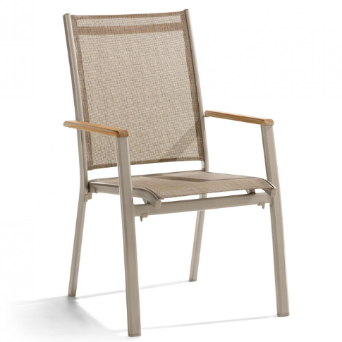 Zebra One Stapelsessel Dark Platinum Edelstahl, Teak Armlehnen