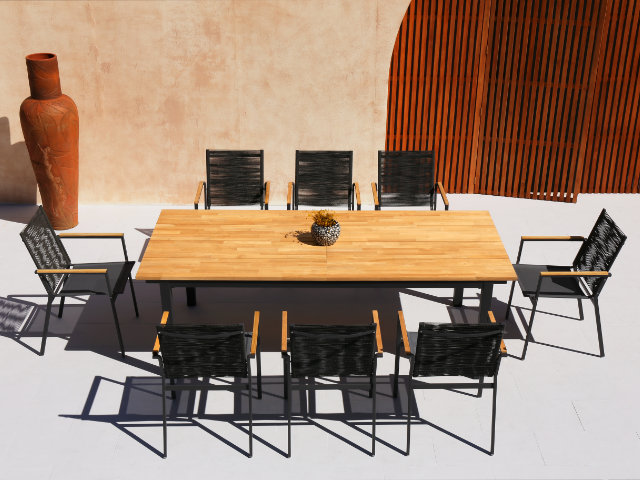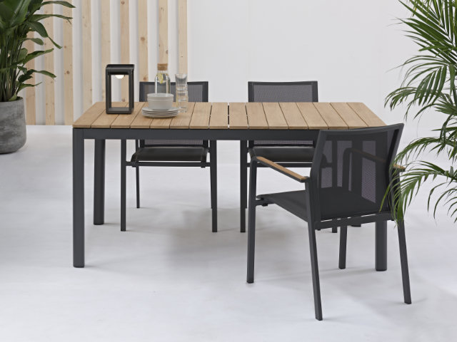 Apple Bee Condor Dining Tisch Alu black 240x95cm mit Teakplatte