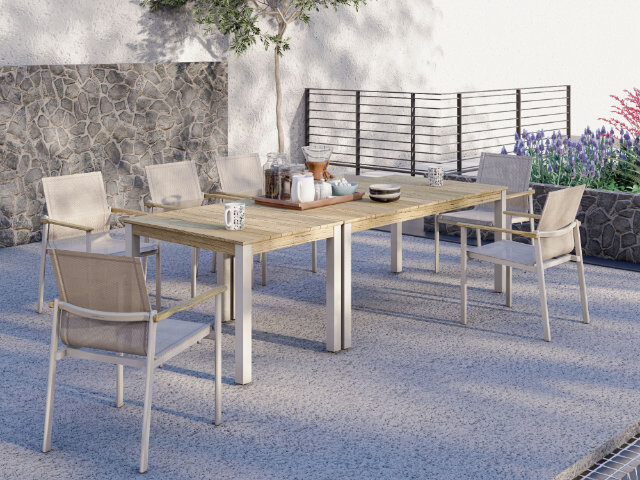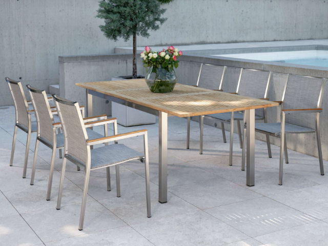 Apple Bee Condor Dining Tisch Alu oyster 240x95cm mit Teakplatte