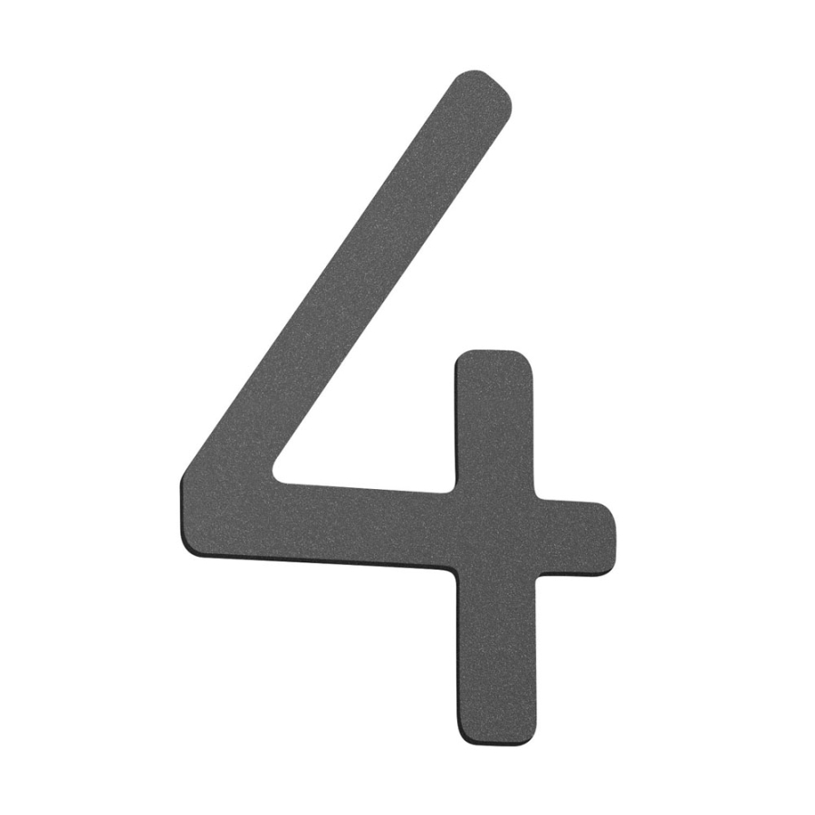 Die "4" besteht aus robustem Edelstahl. Für ein hochwertiges Finish und einen modernen Look ist sie mit einer anthrazitfarbenen Pulverbeschichtung versehen. Diese Beschichtung schützt nicht nur vor Witterungseinflüssen, sondern passt auch zu einer Vielzahl von Außenbereichen und Designs.
