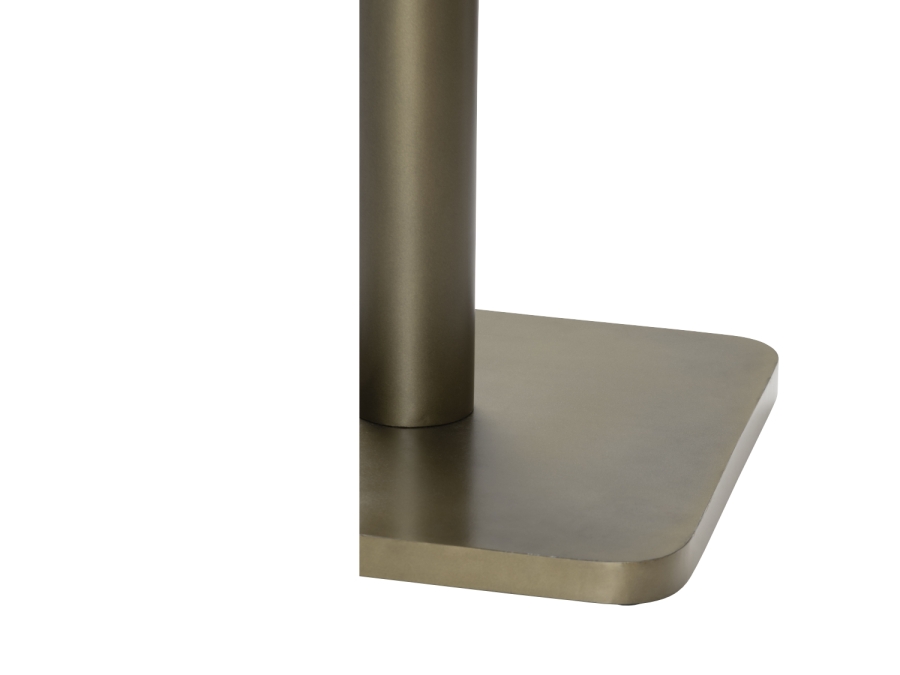 Der Bartisch besticht durch sein robustes Gestell aus pulverbeschichtetem Stahl, das in einer ansprechenden goldenen Farbe gehalten ist. Die Tischplatte aus HPL mit edlem Marble Onyx Dekor verleiht dem Tisch eine luxuriöse Note, die Ihre Einrichtung bereichert. Die Kombination dieser Materialien sorgt für eine langlebige und widerstandsfähige Konstruktion.