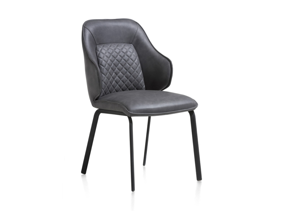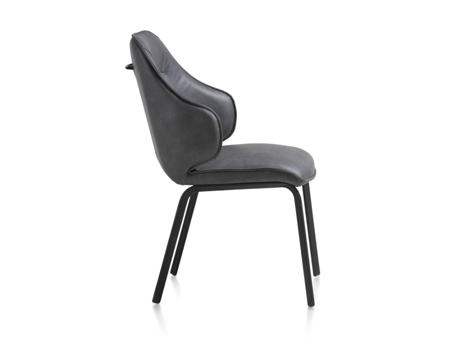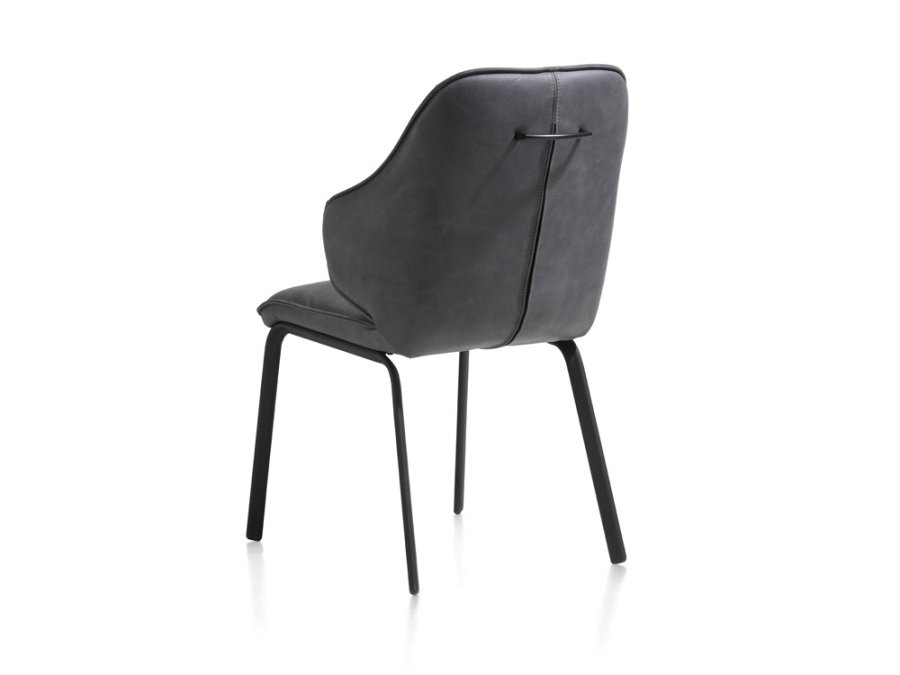 Zur Ausstattung des Armadillo Stuhls gehört auch ein Griff an der Rückenlehne, der das Verschieben des Stuhls erleichtert und den Bezug vor Beschädigungen schützt. Die seitlich angedeuteten Armlehnen erhöhen den Komfort und die Stabilität wird durch vier schlanke Metallbeine gewährleistet, die perfekt mit dem Bezug harmonieren.