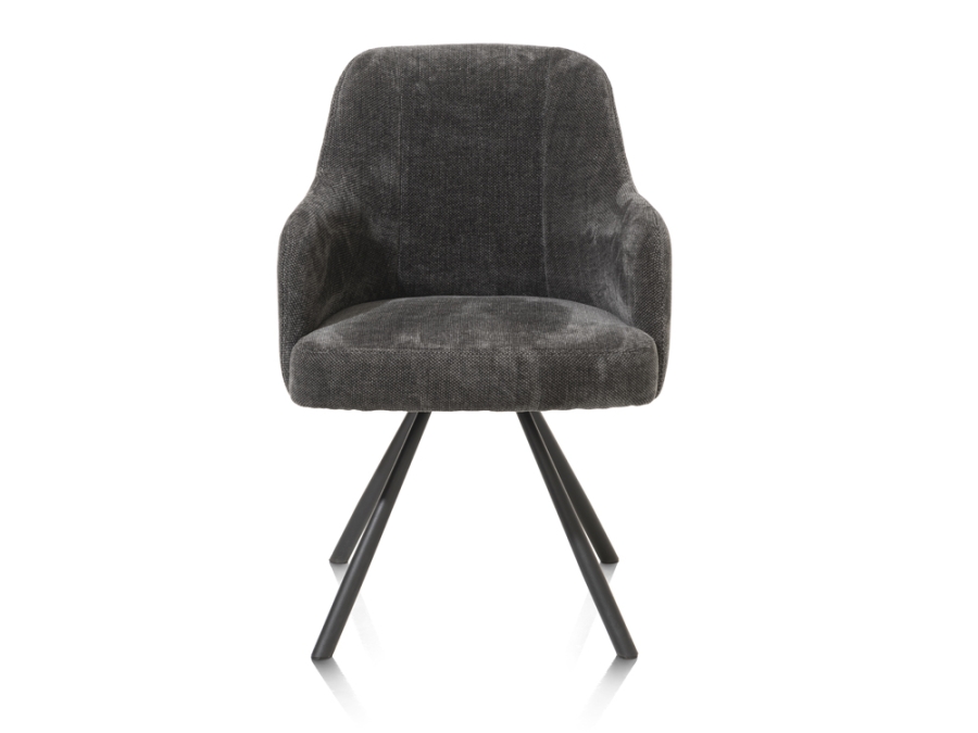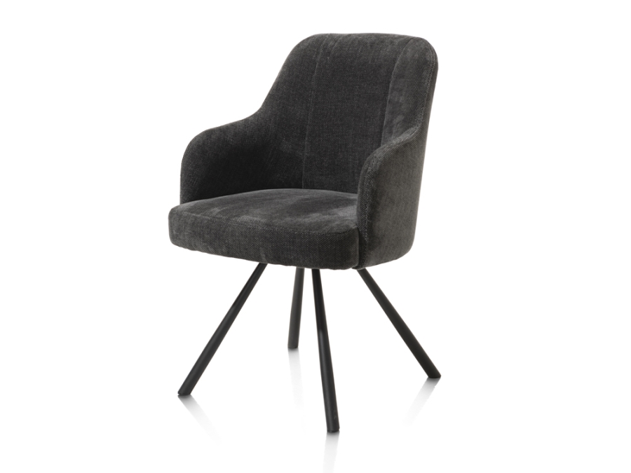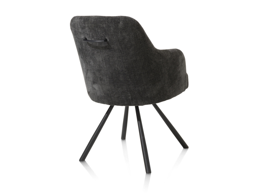 Der Armlehn-, Drehstuhl Eva überzeugt durch hochwertige Materialien. Der ansprechende Levigno-Polsterbezug in Anthrazit, zusammen mit den pulverbeschichteten Stahlbeinen in der Farbe Rough off black, kombiniert Gemütlichkeit und industriellen Chic auf eine besonders stilvolle Art. Mit einem Griff an der Rückenlehne und Taschenfederkern bietet dieser Stuhl eine ausgezeichnete Kombination aus Design und Komfort. Sein pflegeleichtes und drehbares Design macht ihn auch zu einer praktischen Wahl für Ihr Zuhause.