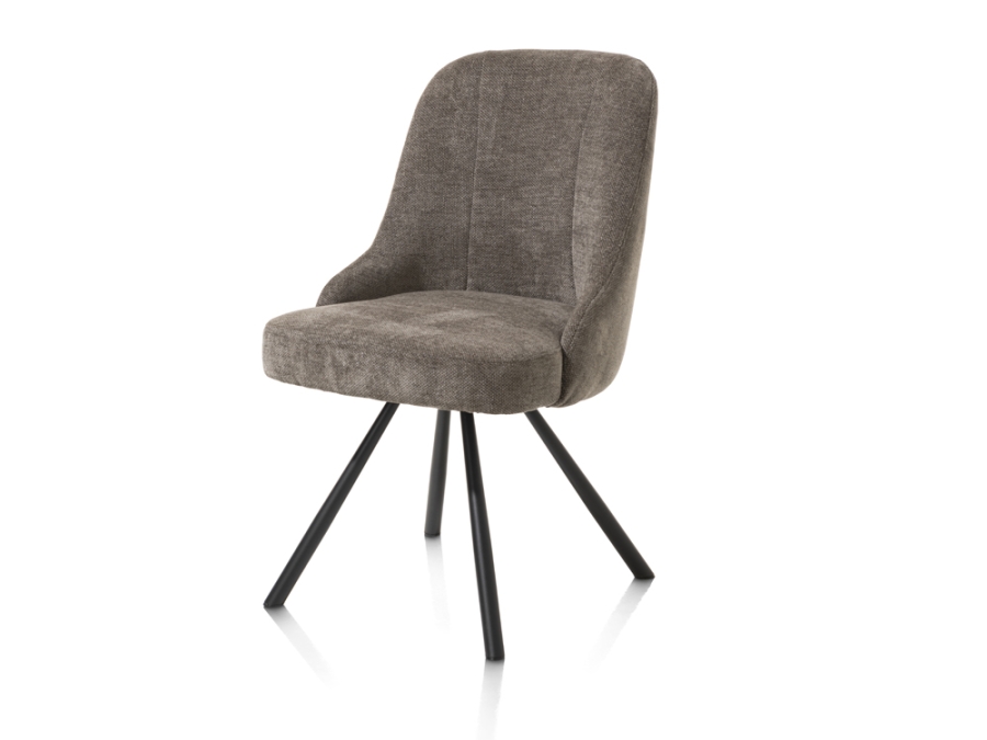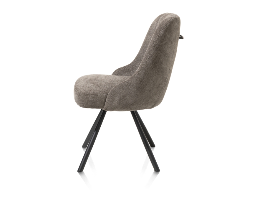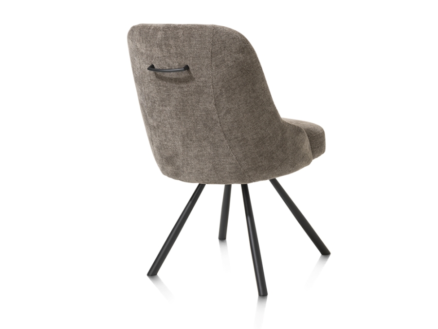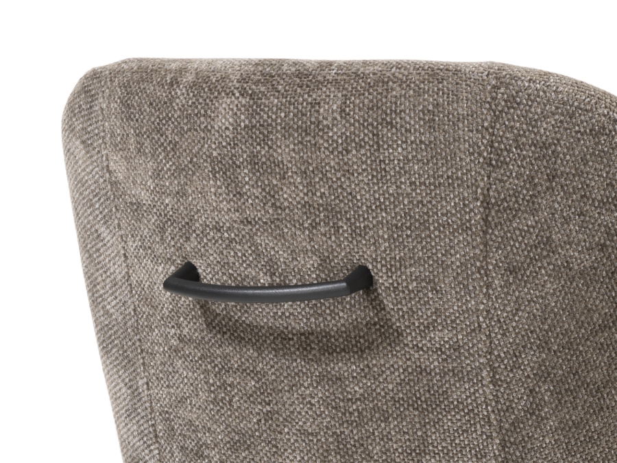 Der Charme des Drehstuhls Eva liegt in seiner harmonischen Materialkombination. Die braune Polsterfarbe des Levigno-Bezugs, gepaart mit den Rough off black farbenen, pulverbeschichteten Stahlbeinen gibt diesem Stuhl seinen speziellen Touch. Ein weiterer Hingucker ist der schlau platzierte Griff an der Rückenlehne, der ihm eine besondere Präsenz verleiht.
