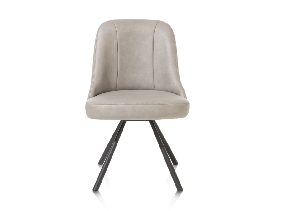 Der Drehstuhl Eva zeichnet sich durch die Verarbeitung hochwertiger Materialien aus. Der Pala-bezogene Sitz in einem angenehm hellgrauen Ton bietet hohen Komfort, während die pulverbeschichteten Stahlbeine in Rough Off Black ein Statement an zeitgeössisches Design setzen. Die sorgfältig gestaltete Rückenlehne hat eine Kontrastnaht und der praktische Griff an der Rückseite machen diesen Stuhl zu einem echten Blickfang.