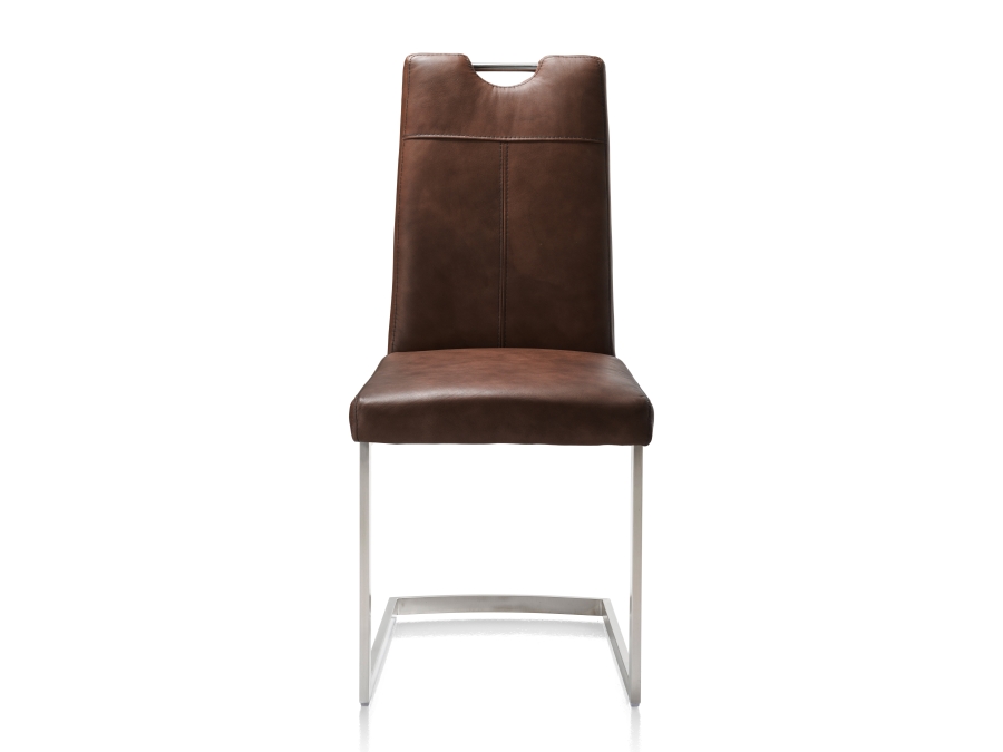 Durch sein aus Edelstahl gefertigtes Schwinggestell ist der Stuhl nicht nur stabil und robust, sondern gleichzeitig ein Hingucker in jedem Raum. Dies wird durch seine modernen und dennoch schlichten Designelemente erreicht. Besonders praktisch zeigt sich der Griff oberhalb der Rückenlehne, der die Handhabung des Stuhls merklich erleichtert.