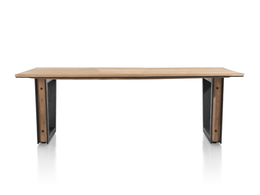 Der Habufa Makalu Esstisch überzeugt durch ein zeitgemäßes Design, das natürliche und industrielle Elemente kombiniert. Die naturfarbene Kikar-Oberfläche wirkt warm und einladend, während das dunkle Rough off black des Gestells für einen markanten, modernen Kontrast sorgt. Die mit Beize auf Wasserbasis behandelte Oberfläche betont Maserung und Struktur des Holzes, sodass jeder Tisch eine individuelle Ausstrahlung besitzt. Dekorative MDF-Akzente in Vulcano black unterstreichen die hochwertige Anmutung und passen ausgezeichnet zu weiteren Möbeln im Industrial- oder Contemporary-Stil, etwa [[Regal]], [[Lowboard]] oder [[Esstischstuhl]].