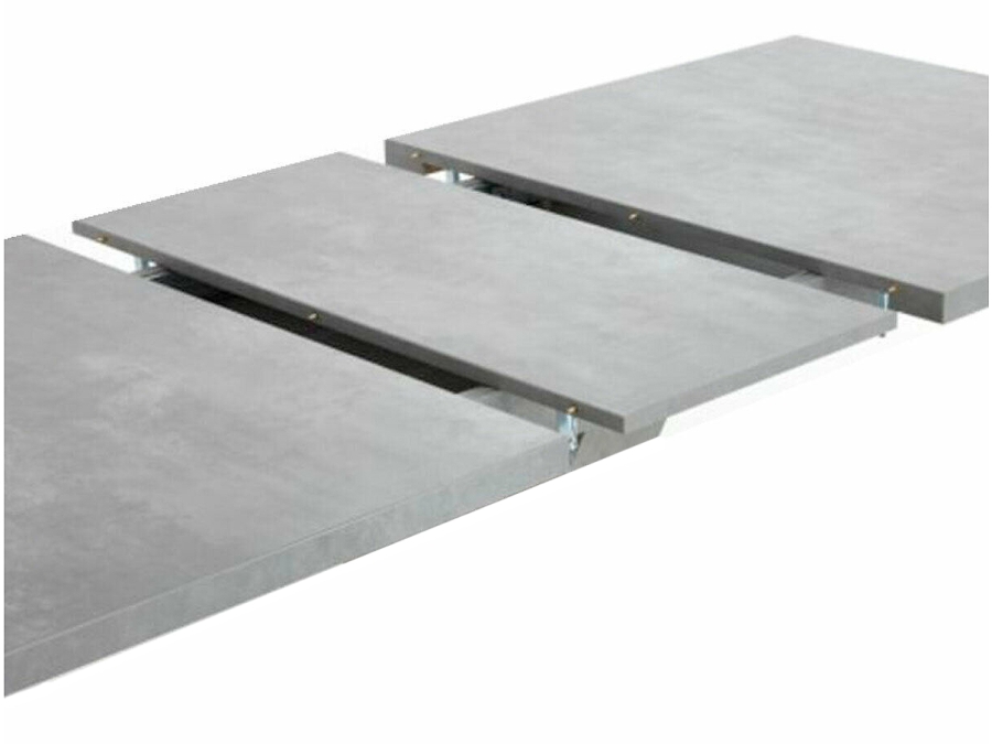Der Malta Ausziehtisch von Niehoff wird teilmontiert geliefert, was den Aufbau erleichtert. Ein besonderes Merkmal dieses Tisches ist der Synchronauszug, der eine einfache und schnelle Anpassung der Tischgröße ermöglicht. Außerdem besticht der Tisch durch seine elegante Optik, die durch die Kombination aus Edelstahl und Holz sowie der Tischplatte im Beton-Dekor und dem schwarzen Gestell erreicht wird.