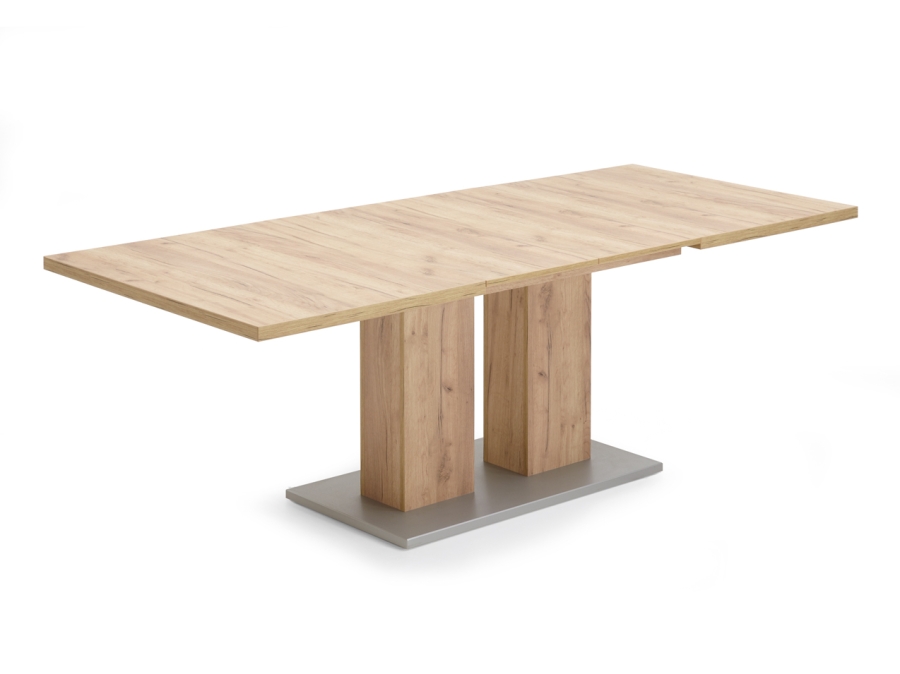 Der Ausziehtisch der Serie Melina besteht aus hochwertigem Holz in Dekor-Optik. Dieses Material verleiht dem Tisch nicht nur seine attraktive Optik, sondern sorgt auch für seine Langlebigkeit und Robustheit. Die Bodenplatte in Edelstahl-Optik unterstreicht die moderne und eleganten Designlinie dieses Tisches und rundet das Gesamtbild harmonisch ab.