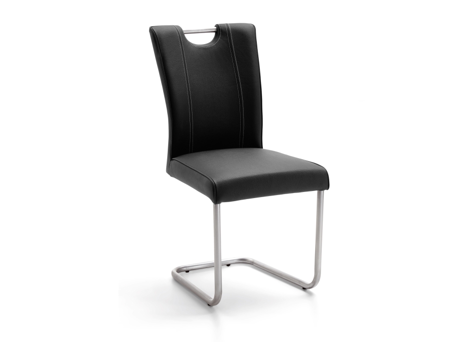 Der Schwingstuhl besticht zudem mit seiner hohen Belastbarkeit von max. 140kg. Zusätzliche Details, wie der Edelstahlgriff an der oberen Rückenlehne und die vormontierten Gleiter, machen den Schwingstuhl zum komfortablen Blickfang in Ihrem Zuhause. Des Weiteren zeichnet er sich durch den Freischwinger-Typ und Metall- und Leder-Materialien aus.