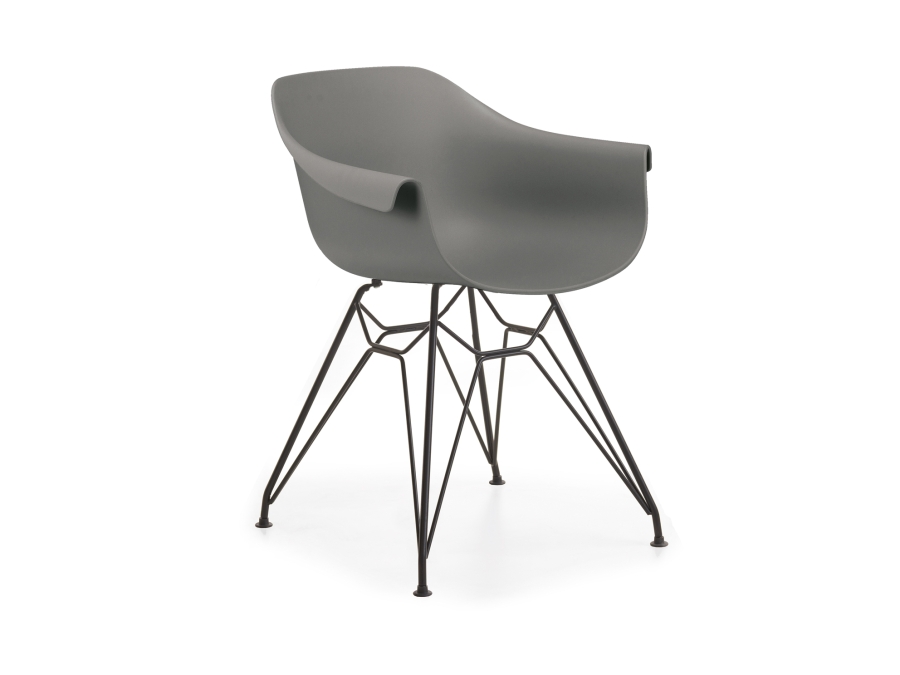 Die Basis des Schalensessels bildet ein stabiles Eisengestell in der Farbe Schwarz, welches sowohl für Standfestigkeit als auch für eine attraktive Optik sorgt. Die Sitzfläche besteht aus hochwertigem Kunststoff in ansprechendem Grau. Die Kombination aus Eisen und Kunststoff verleiht dem Sessel ein zeitgemäßes und dennoch sehr wohnliches Flair.