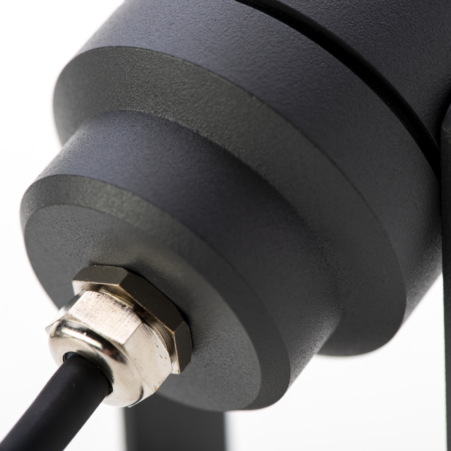 Dieser anthrazitfarbene Strahler besteht aus robustem, pulverbeschichtetem Aluminium, das nicht nur optisch überzeugt, sondern auch unter widrigsten Wetterbedingungen Stand hält. Mit einer Tiefe von ca. 11,2 cm, einer Höhe von ca. 10,9 cm und einem Durchmesser von ca. 5,9 cm ist der Strahler kompakt und nahezu überall einsetzbar. Mit einem Gewicht von gerade mal ca. 0,5 kg lässt sich diese Standleuchte sehr einfach positionieren und bei Bedarf auch schnell umpositionieren.