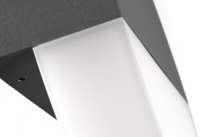 Das auffällige Design der Außenleuchte CMD 9012 Berlin Anthrazit äußert sich durch die kreisrunde Form und die Teilung in der Mitte. Dabei besteht die obere Hälfte der Leuchte aus anthrazitfarbenem, pulverbeschichtetem Aluminium und der untere Halbkreis erzeugt mit einer 6 Watt LED ein angenehmes Licht.