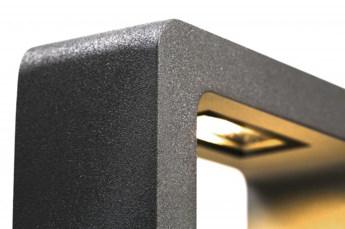 Die CMD Wandleuchte besteht aus einem hochwertigen und robusten Aluminium-Rahmen. Eine spezielle pulverbeschichtete Oberfläche bietet zusätzlichen Schutz und hebt die anthrazitfarbene Wandleuchte stilsicher hervor.