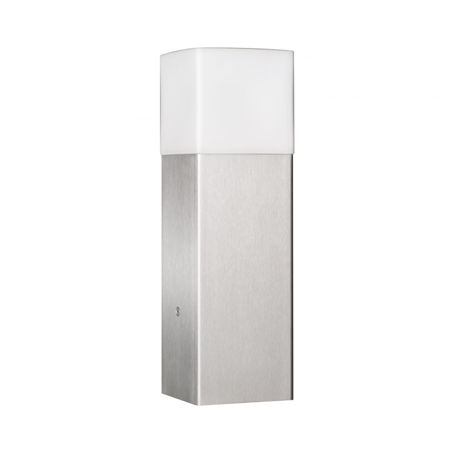 Dieses Modell präsentiert sich in prägnantem Edelstahl. Das Material zeichnet sich durch seine Robustheit und Witterungsbeständigkeit aus, Ideale Voraussetzungen für eine Außenleuchte. Hervorzuheben ist ebenfalls die Blende aus Opalglas, die für eine gleichmäßige und atmosphärische Lichtverteilung sorgt.