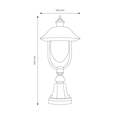 Mit einer Breite und Tiefe von jeweils ca. 25 cm und einer Höhe von ca. 54 cm fügt sich die Lampe perfekt in Ihr Ambiente ein. Sie wiegt ca. 2,75 kg und ist gut zu handhaben. Die IP 43 Schutzart zertifiziert die Leuchte als geschützt gegen Fremdkörper ab 1mm Durchmesser und fallendes Sprühwasser bis 60° gegen die Senkrechte. Der Leuchtkörper bietet Platz für ein Leuchtmittel mit max. 100W, eingefasst in einem E27 Sockel. Bitte beachten Sie, dass das Leuchtmittel nicht im Lieferumfang enthalten ist.