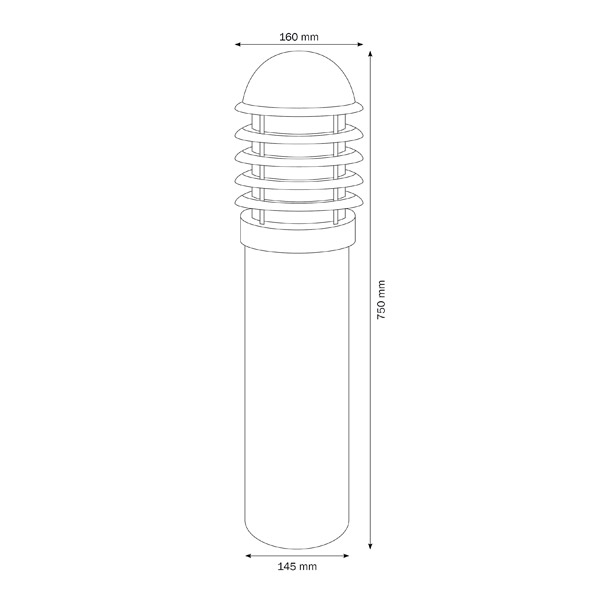 Diese Standleuchte ist gegen Fremdkörper ab 1mm Durchmesser und allseitiges Spritzwasser (IP44) geschützt. Sie ist mit einem E27 Sockel versehen und für Leuchtmittel bis max. 75 Watt geeignet. Es können Glühleuchtmittel, Energiesparleuchtmittel und LED verwendet werden. Bitte beachten Sie, dass das Leuchtmittel nicht im Lieferumfang enthalten ist. Mit einer Höhe von ca. 75 cm und einem Gewicht von ca. 5 kg ist die Leuchte eine beeindruckende Erscheinung. Dabei beträgt der Durchmesser ungefähr 16 cm.