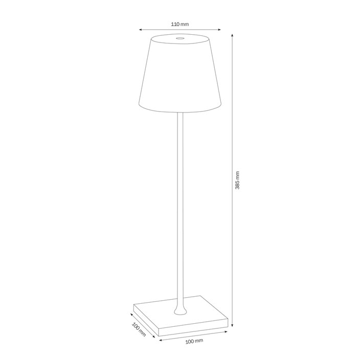 Die Tischleuchte mit der Bezeichnung 5099 hat eine Höhe von 38,5 cm und ist in einem eleganten Silber-Ton gehalten. Mit ihren Maßen von 10 cm in Breite und Tiefe und ihrem Durchmesser von 11 cm ist sie handlich und vielseitig einsetzbar. Die robuste Konstruktion aus Aluminium-Druckguss und Polycarbonat sorgt dafür, dass sie trotzt auch den widrigsten Bedingungen im Außenbereich.