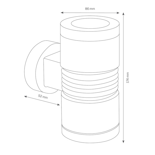 Die LCD Wandleuchte ist mit zwei GU10 Sockeln versehen und für Leuchtmittel bis maximal 9 Watt geeignet. Sie kann daher sowohl mit Hochvoltleuchtmitteln als auch mit LEDs bestückt werden. Hinweis: Das Leuchtmittel ist nicht im Lieferumfang enthalten. Mit einer Höhe von etwa 17,4 cm und einem Durchmesser von etwa 8,6 cm ist sie auch von den Abmessungen her unaufdringlich und gut integrierbar.