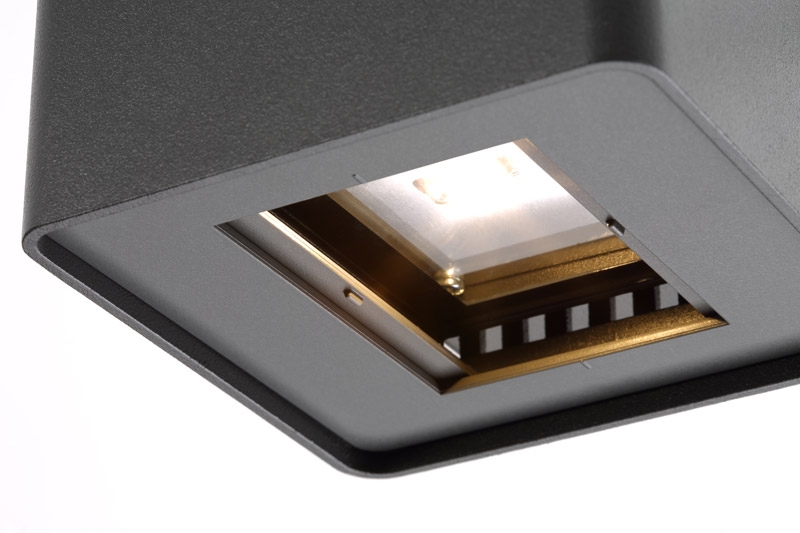 Das LED Modul der Außenwandleuchte erzeugt ein angenehm warmweißes Licht mit einer Farbtemperatur von etwa 3000 Kelvin. Die Lichtausstrahlung nach oben und unten (Up & Down Strahlung) sorgt für einen eindrucksvollen Beleuchtungseffekt mit einem Lichtausfall von 0-110°. Dank der LED-Technologie ist die Leuchte energieeffizient und langlebig. Sie erreicht ihre maximale Helligkeit bereits unmittelbar nach dem Einschalten und ist somit sofort einsatzbereit.