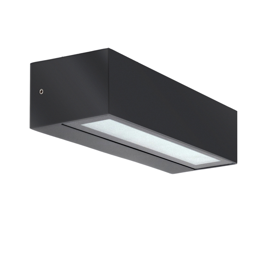 Die Wandleuchte ist aus Aluminium-Druckguss gefertigt und präsentiert sich in der modernen und anmutigen Farbe Graphit. Der Diffusor der Lampe ist aus hochwertigem Glas gefertigt, das für optimale Lichtverhältnisse sorgt.