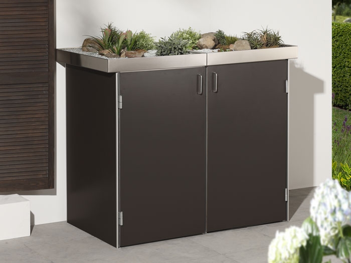 Die Binto Grundverkleidung HPL hat eine Kapazität für eine Mülltonne von bis zu 240 Litern. Damit bietet sie genug Platz für Ihre Haushaltsabfälle und hilft Ihnen, Ihren Außenbereich sauber und ordentlich zu halten. Ihre Mülltonne wird diskret versteckt, während die ansprechende Optik Ihrer Grundverkleidung bewundert wird.