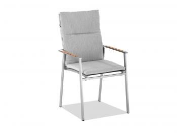 Stärken Sie das Comfort-Erlebnis mit der passenden Polsterauflage Scalea von Niehoff für Ihren Hochlehner Scalea oder Scalea Flex. Gefertigt aus hochwertigem Outdoor-Gewebe und veredelt mit Acryl, kombiniert diese Auflage Widerstandsfähigkeit, Wasserdichtigkeit und Verschmutzungsresistenz in einer Einheit. Dank der UV-Beständigkeit verblasst das Material auch nicht bei intensiver Sonneneinstrahlung,um lange seine attraktive Royal-silber Farbe zu behalten.