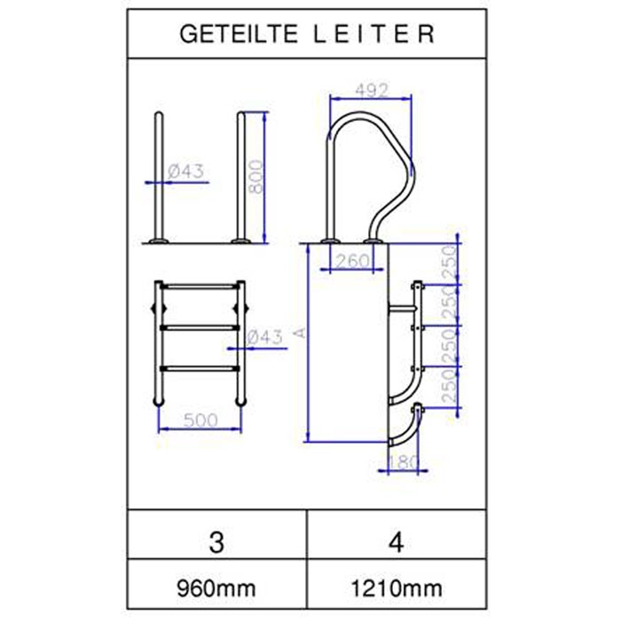 Die Ideal Geteilte Leiter 58, 3-stufig ist ein edles und gleichzeitig praxisorientiertes Zubehör für jeden Pool. Gefertigt aus hochwertigem V2A Edelstahl, bietet diese Leiter lang anhaltende Stabilität sowie eine glanzvolle Optik für Ihr Schwimmbecken.