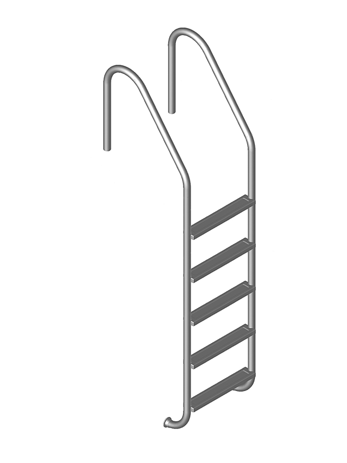 Hinweis: Die Leiter kann durch Überchlorierung oder einen falschen pH-Wert oberflächig Rost ansetzen. Jedoch lässt sich dies leicht mit entsprechenden Edelstahlpflegemitteln entfernen. Die Mindestbeckentiefe für die Montage der 5-stufigen Leiter beträgt 1620 mm, und sie ist damit ideal für private Schwimmbäder mit senkrechter Beckenwand und Überlaufrinne geeignet.