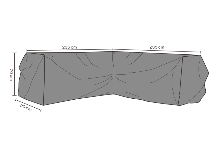 Die Schutzhülle hat eine Länge und Breite von jeweils ca. 235 cm, was eine ausreichende Abdeckung gewährleistet. Mit einer Höhe von ca. 70 cm und einer Tiefe von ca. 90 cm ist sichergestellt, dass auch größere Möbelgruppen vollständig geschützt werden können.