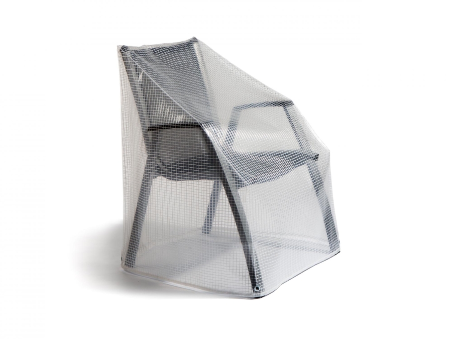 Die Sesselhaube besteht aus Polyethylen-Gitter-Folie, einem Verbund aus zwei Folien und einem eingeschlossenen Gittergelege.