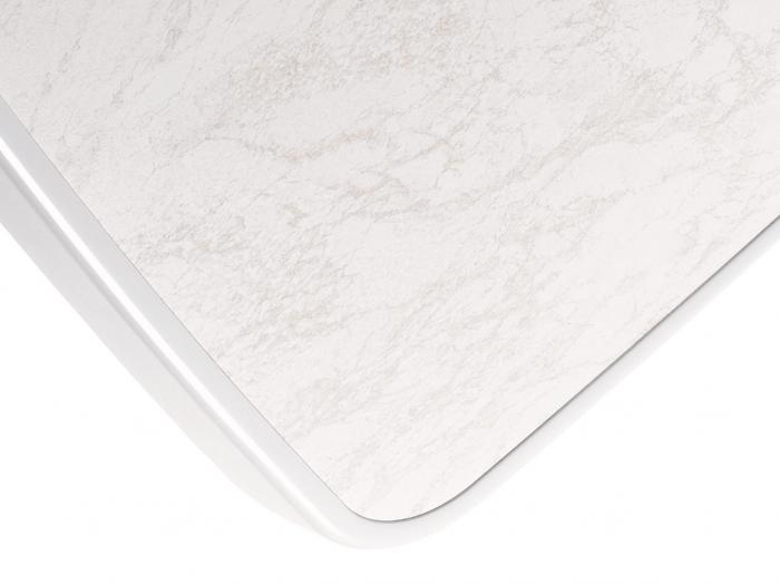 Die Oberflächen der Mecalit®-Pro Tischplatten besitzen, entgegen reinen Kunststoffplatten, die Qualitätseigenschaften von Küchenplatten und sind mit der melaminbeschichteten Oberfläche dauerhaft wetterbeständig.