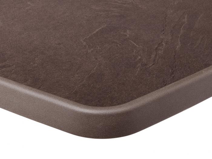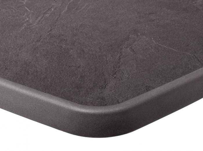 Durch thermoplastische Umspritzung von hochverdichteten Pressspanplatten mit dem neuen High-Tech-Kunststoffmaterial ELASTEC erhalten die Mecaltit®-Pro Tischplatten von Sieger einen formschönen, hermetisch abgedichteten Rand, der mit seiner edlen Strukturoberfläche das Erscheinungsbild der Tische farblich abrundet. Die melaminbeschichtete Oberfläche ist pflegeleicht und wetterbeständig.