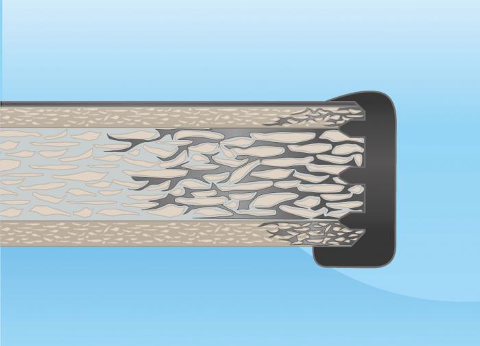 Die Abbildung zeigt den genauen Aufbau einer Vivodur®-Tischplatte von Sieger. Der Plattenkern, die Verzahnung und die kaum sichtbare Randüberlappung sind deutlich erkennbar.