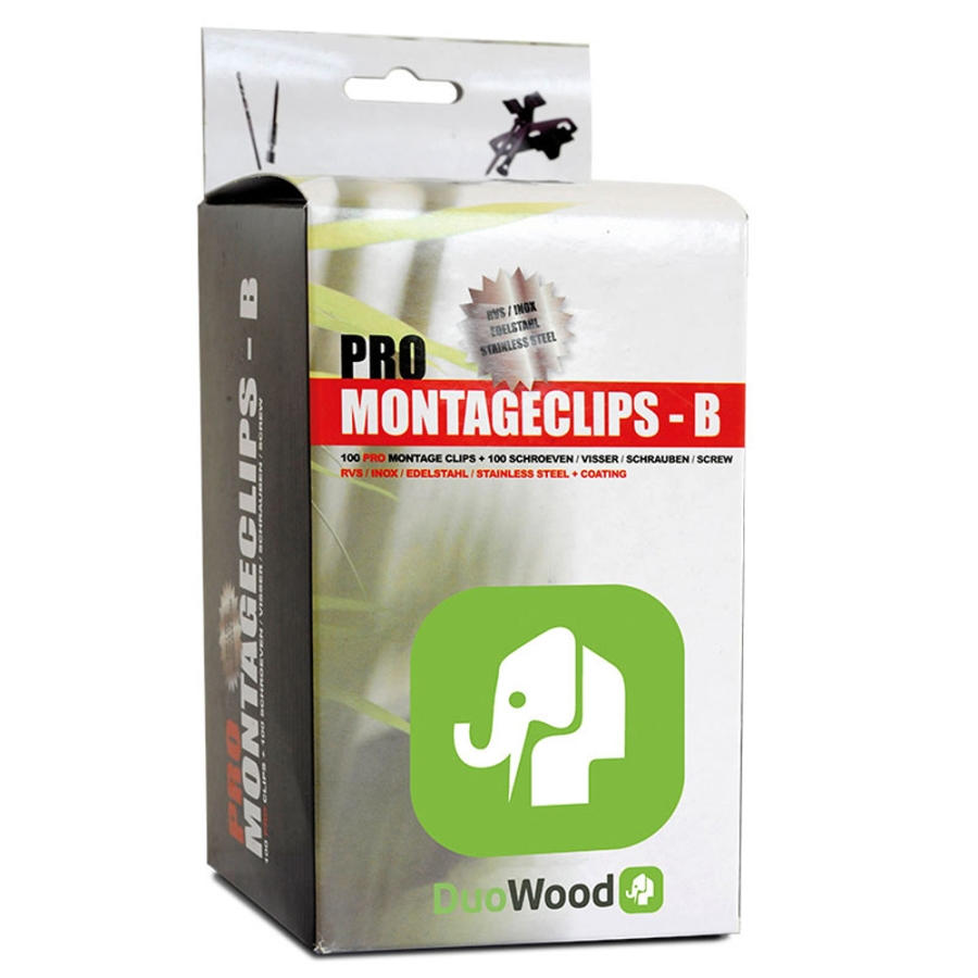 Speziell konzipiert für die Befestigung von Elephant Duo Wood Dielen, sorgen die Clips für eine solide und sichere Verbindung zwischen Diele und Unterkonstruktionskomponenten. Beachten Sie jedoch, dass pro Kreuzpunkt ein Clip benötigt wird.