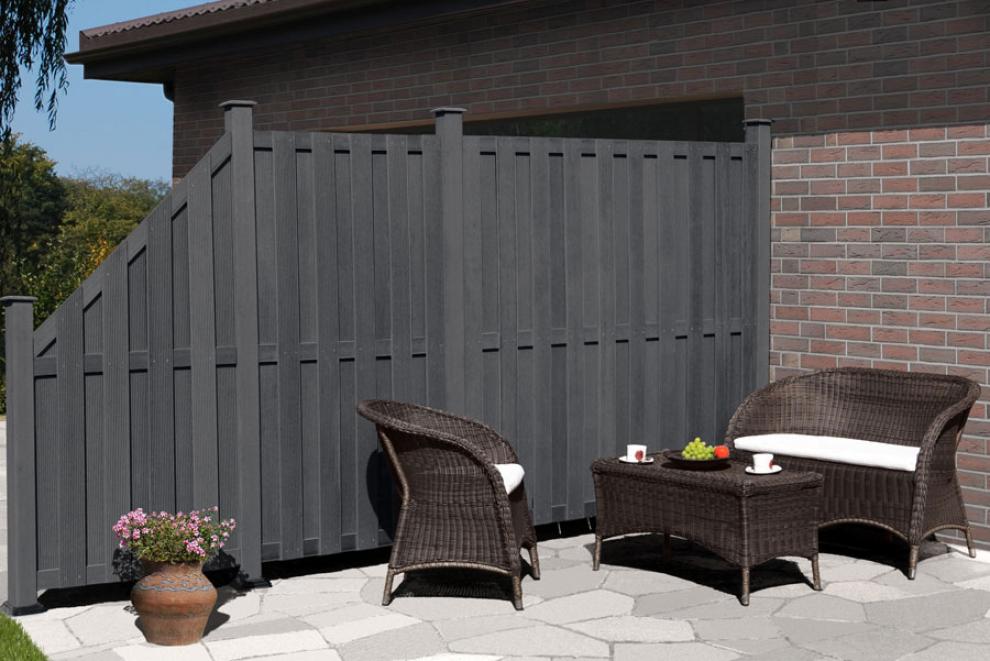Zaunserie BPC in anthrazit als Terrassentrenner.