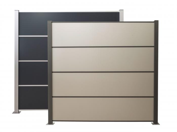Die Sichtschutzelemente aus der Serie Elephant ACP überzeugen durch ihre widerstandsfähigkeit und leicht zu reinigende Oberfläche. ACP bezeichnet einen Platten Verbundwerkstoff mit Aluminiumschichten.