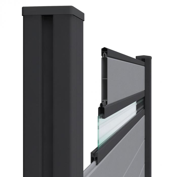 Drei Längsseiten der Pfosten sind zur Aufnahme der Profilbretter genutet. So können sie als End- Mittel- oder Eckpfosten eingesetzt werden. Aus optischen Gründen sollten die nicht benötigten Nuten durch die entsprechenden Pfostenabdeckleisten verschlossen werden. Diese sind im Lieferumfang des Pfostens nicht enthalten.
