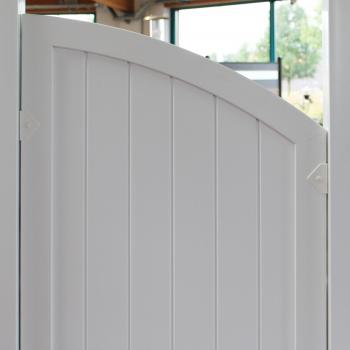 Bei der Fertigung der BasicLine-Tore wird werkseitig ein stabiler Metallrahmen auf die Rückseite eines Zaunelementes in Sondergröße gesetzt. Der Rahmen aus Aluminium entspricht im Farbton weitgehend dem Design des Zaunelementes und bleibt auf der Innenseite des Torelementes sichtbar.