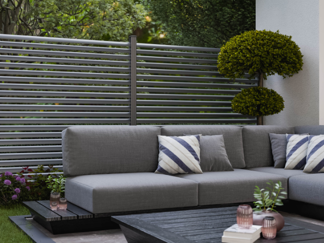 Die beliebte Zaunserie Alu Fence Rhombus von Osmo besteht aus hochwertigem Aluminium und überzeugt durch ihre pflegeleichte, langlebige Qualität. Mit 24 waagerecht angeordneten Rhombusprofilen schafft der Zaun eine klare Struktur, bietet einen luftdurchlässigen Sichtschutz und lässt sich durch individuelle einstellbare Leistenabstände flexibel anpassen. Dank der folienbeschichteten Oberfläche ist Alu Fence besonders witterungsbeständig und farbbeständig - selbst bei starker Sonneneinstrahlung. Die Variante in lärchenfarbener Holzoptik kombiniert den natürlichen Charakter von Holz mit den Vorteilen von Aluminium. Erhältlich ist Alu Fence nicht nur in Lärchenoptik, sondern auch in weiteren modernen Farbtönen wie Anthrazit, Grau und Weiß. Im Lieferumfang ist bereits das passende Montagezubehör enthalten, sodass ein schneller Aufbau problemlos möglich ist. Entdecken Sie jetzt die Alu Fence Serie von Osmo.